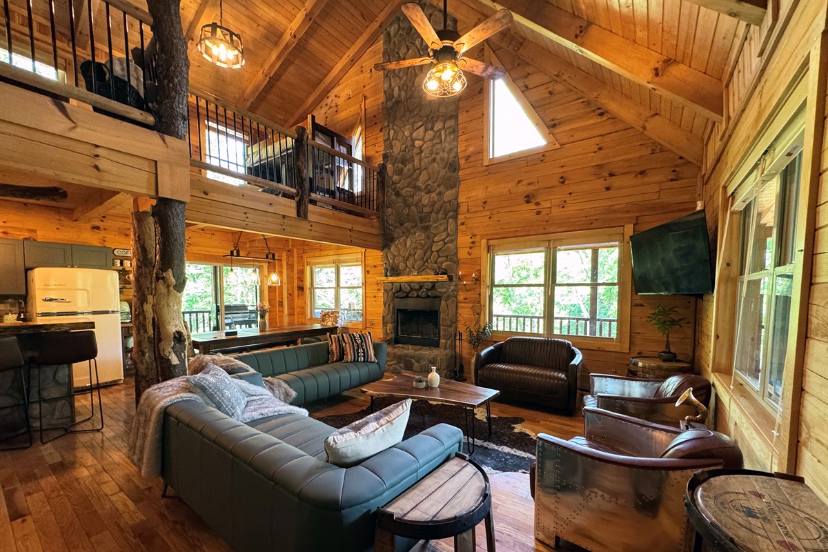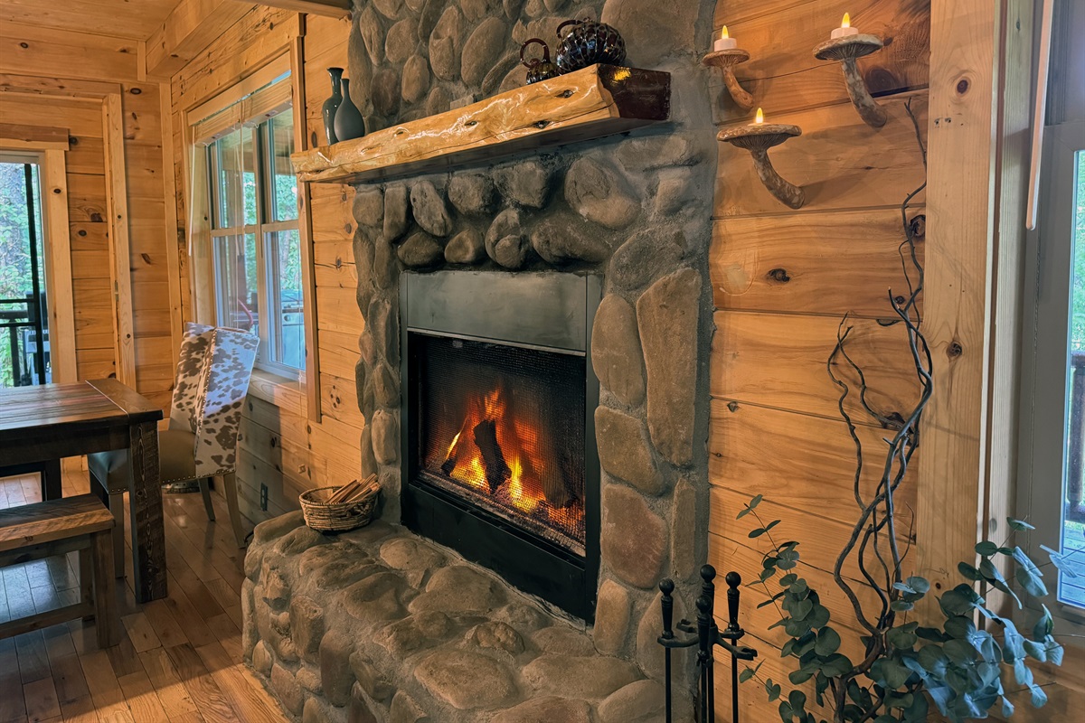 Upon entering the cabin, you'll be struck by the professional decore – from the two stone hearth wood burning fireplaces, designer leather furniture, high-end retro kitchen, and luxurious bedroom suites, each space offers amazing amenities more beautiful than the next! You will love the open floorplan with a cozy living and amazing fireplace with complimentary firewood provided. Also enjoy the fireplace from the dining area which seats 10 at the custom barnwood table and 4 at the live edge kitchen island. Watch your favorite movies, shows and sports in the living room, game room, and every bedroom which are appointed with Roku TV's with a Fubo subscription for local and national programming. The area is known for substandard internet connections, but not at Ramblin Rose! You'll be amazed with blazing fast and stable 100mbps Starlink internet connection throughout the property.