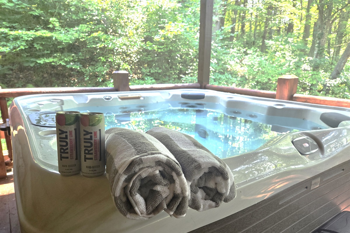 You’ll love spending time on the two-story deck, whether it be soaking in the large hot tub, cooking dinner on the RecTeq pellet grill (pellets provided) and 36" Blackstone, lounging on the Charleston bed or just sitting down, relaxing and recapping your adventures on the outdoor couch with your family and friends. Your group will love the outdoor activities that await on the lower level deck including cornhole, giant connect four, giant Jenga, or just relaxing in the comfortable chairs.
