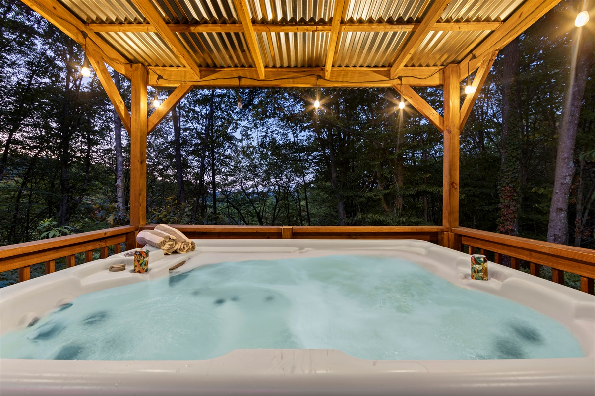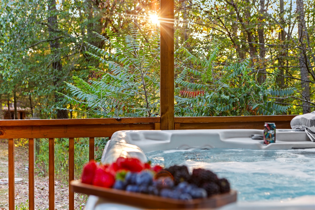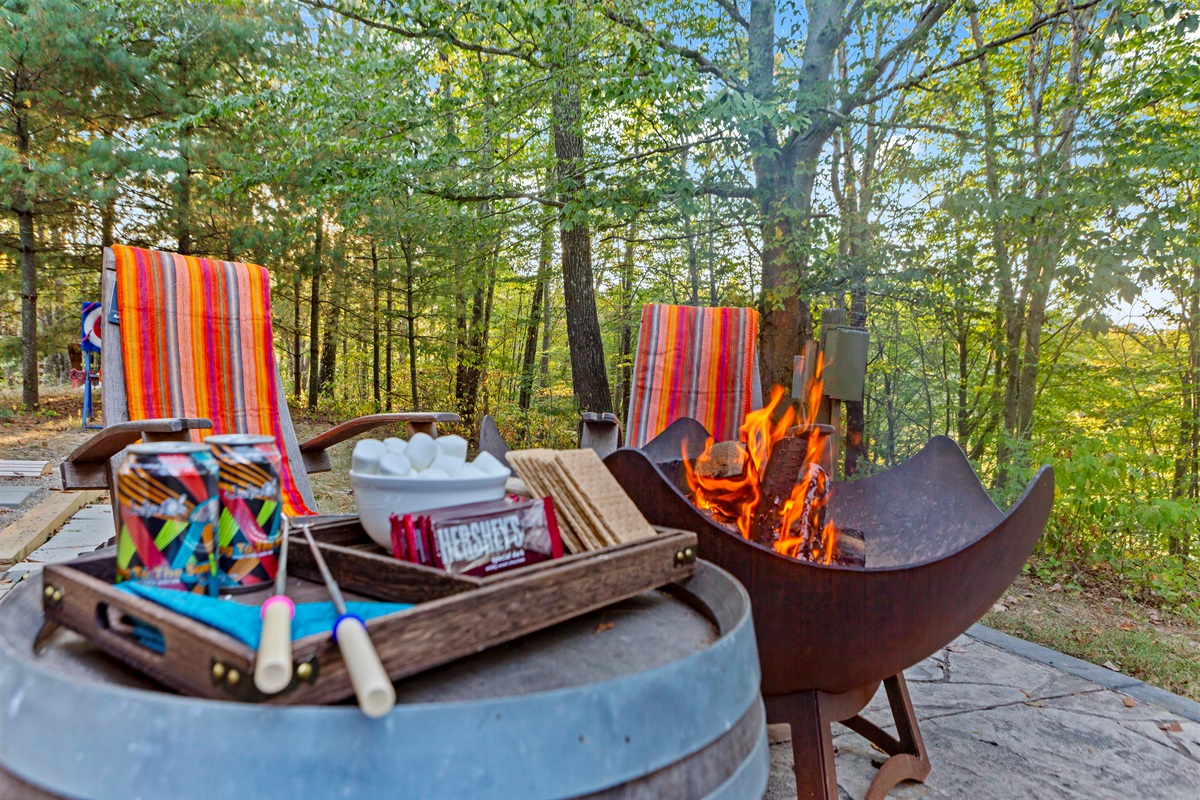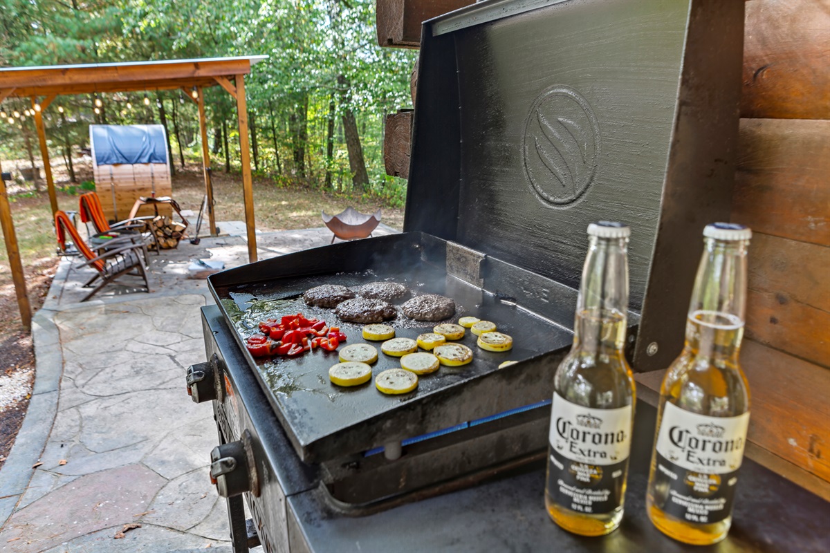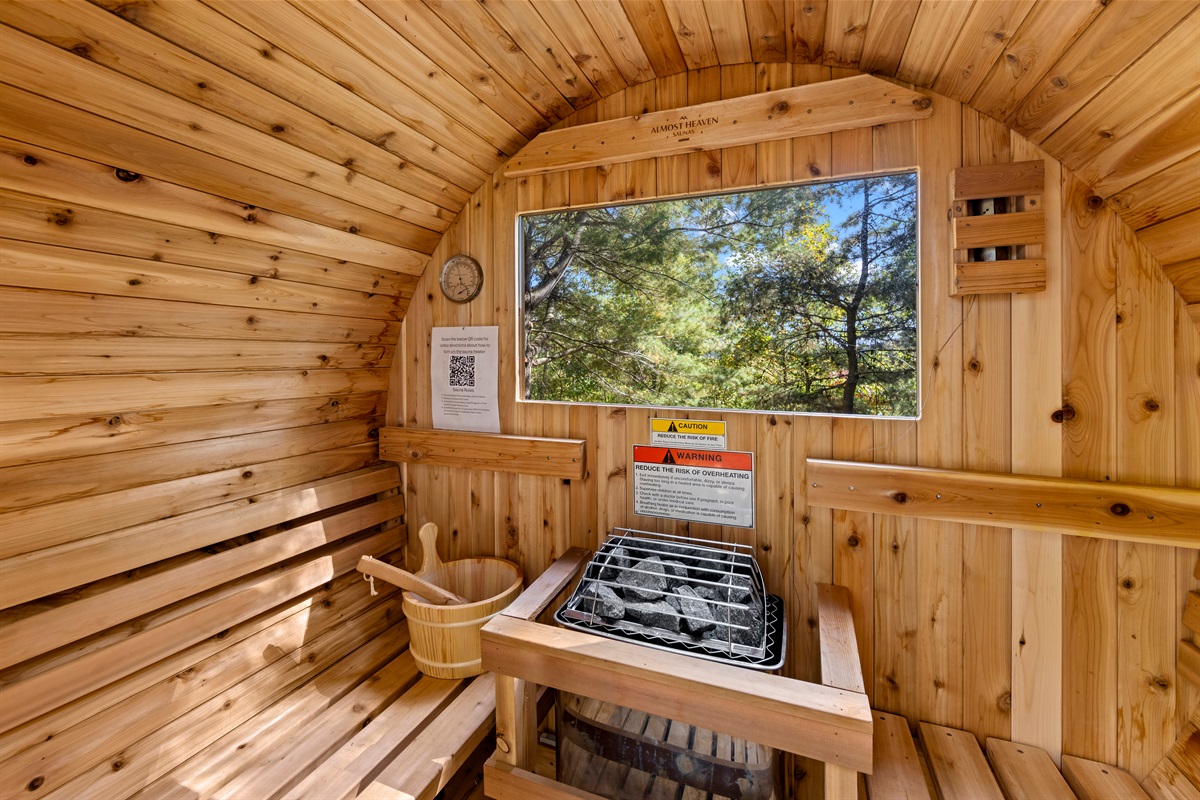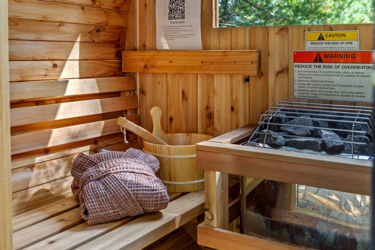 You’ll love spending time on the patio and deck, whether it be soaking in the hot tub overlooking the creek, cooking dinner on the Blackstone grill (propane provided), or just sitting down, relaxing and recapping the days adventures on the patio watching the sunset while toasting s'mores around the fire pit. You'll also enjoy the warmth and tranquility of the newly added 2-person barrel sauna If you're feeling on the more competitive side, challenge your partner to a game of cornhole with our custom cornhole boards or some ax and star throwing on the mesh throwing board.