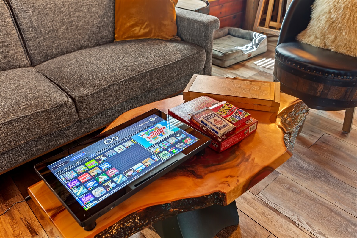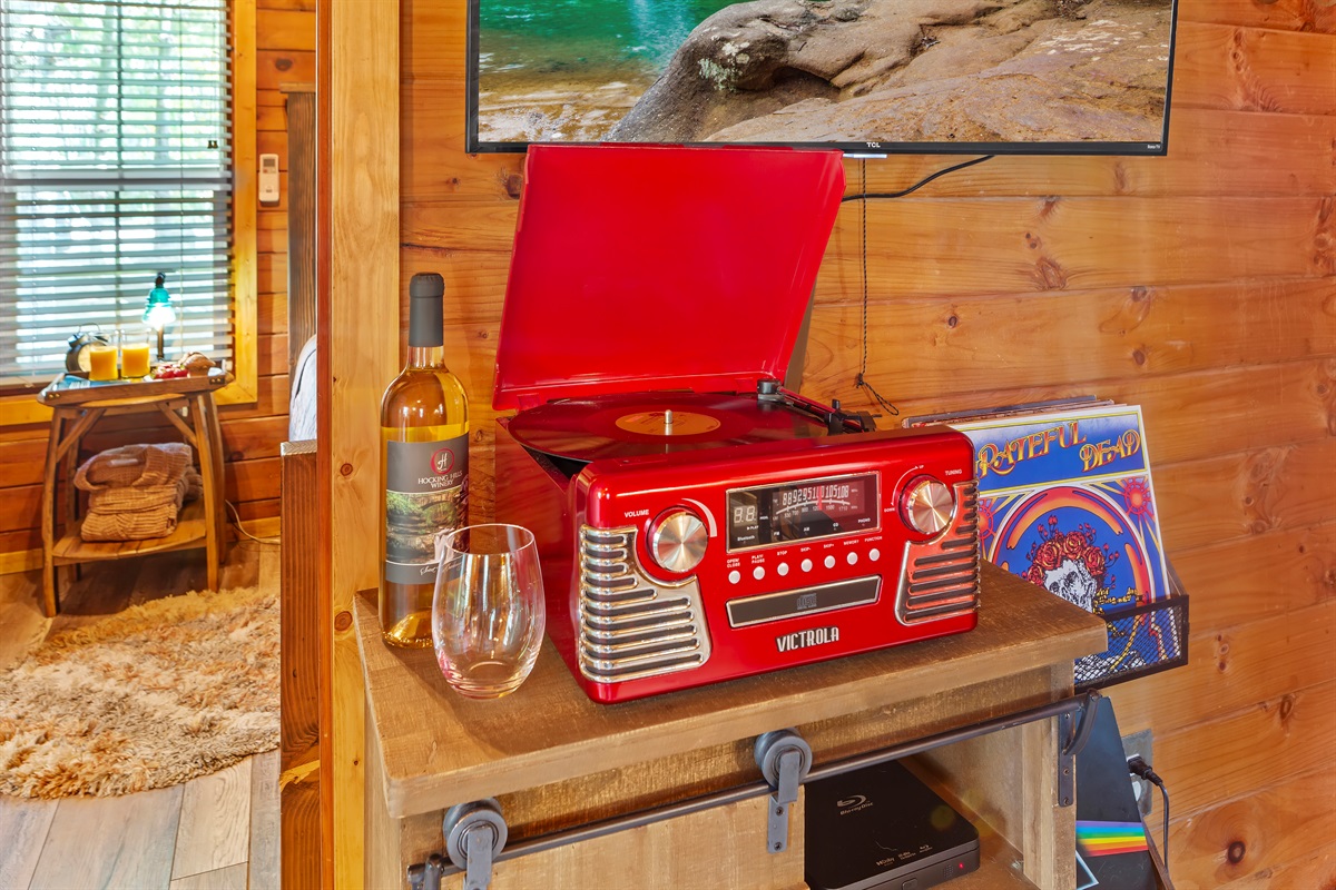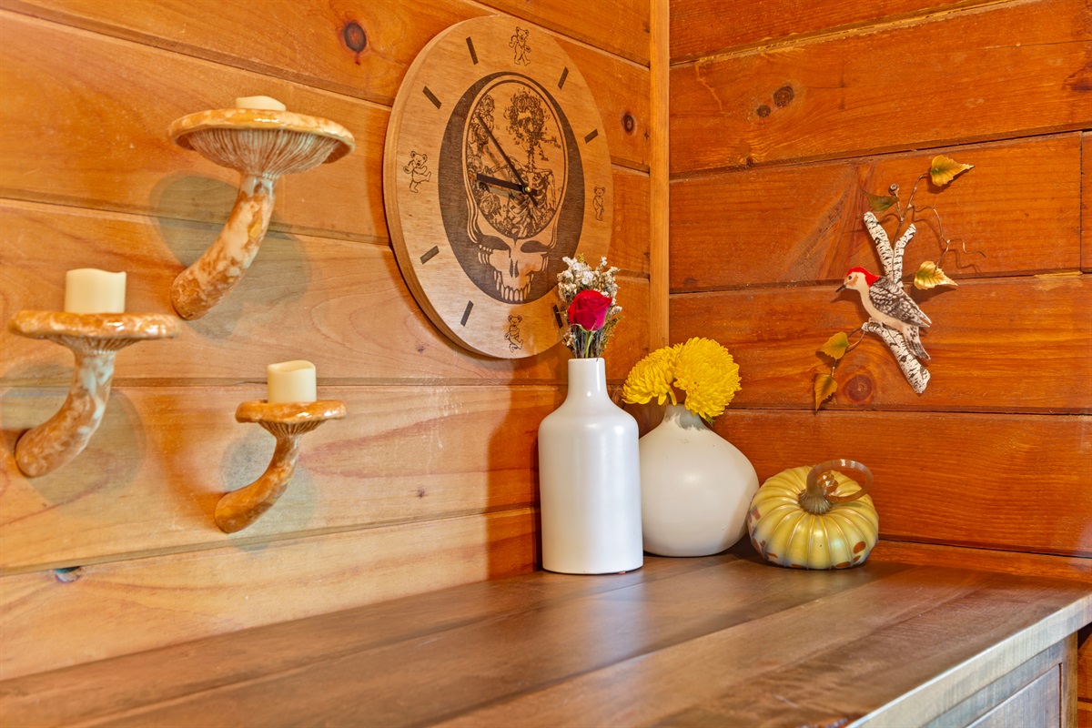 The inviting living room has custom Amish live-edge tables and seating, the centerpiece being the mid-century modern electric fireplace. You'll appreciate the media center that boasts a vinyl record collection, CDs, DVDs/BluRays, and a retro Nintendo unit offering hours of entertainment. Enjoy local programming on YouTube TV or sign into your favorite streaming service on the 40" Roku TV and enjoy your favorite movies and shows.