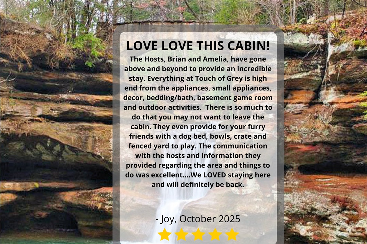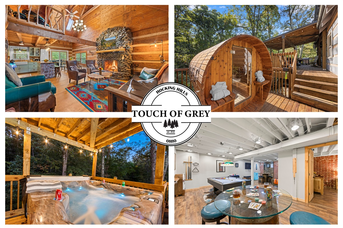 Touch of Grey Cabin Luxury Dog-Friendly Hocking Hills Cabin with Hot Tub, Sauna, and Game Room